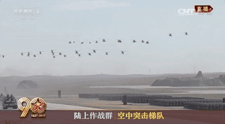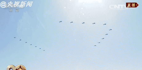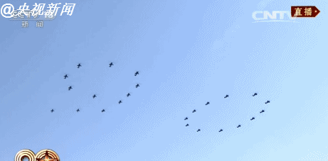 空中标识梯队呼啸而来!17架直升机组成“八一”标识,象征着人民军队的“八一”起点;24架直升机汇成“90”字样,象征着人民军队走过了90年的光辉历程。