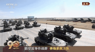 红旗-6弹炮导弹发射车、跟踪高炮车和09式自行高炮组成了弹炮系统方队。