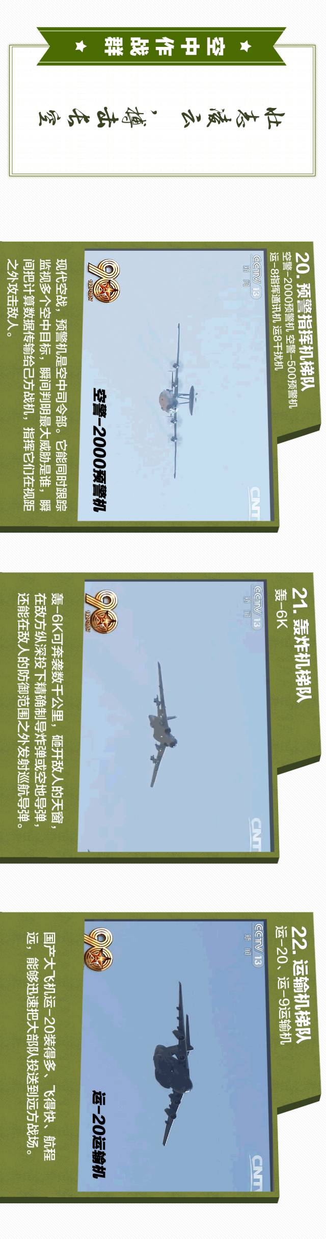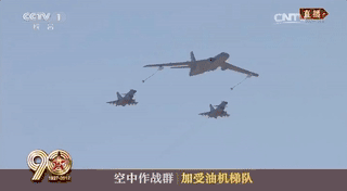 加受油机梯队:2架轰油-6空中加油机与4架歼-10C战斗机组成加受油机梯队,接受检阅。