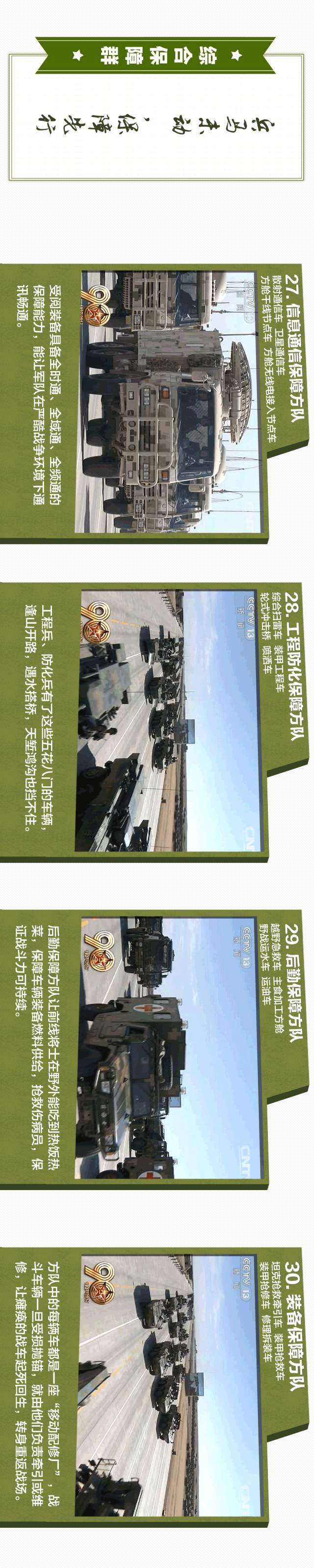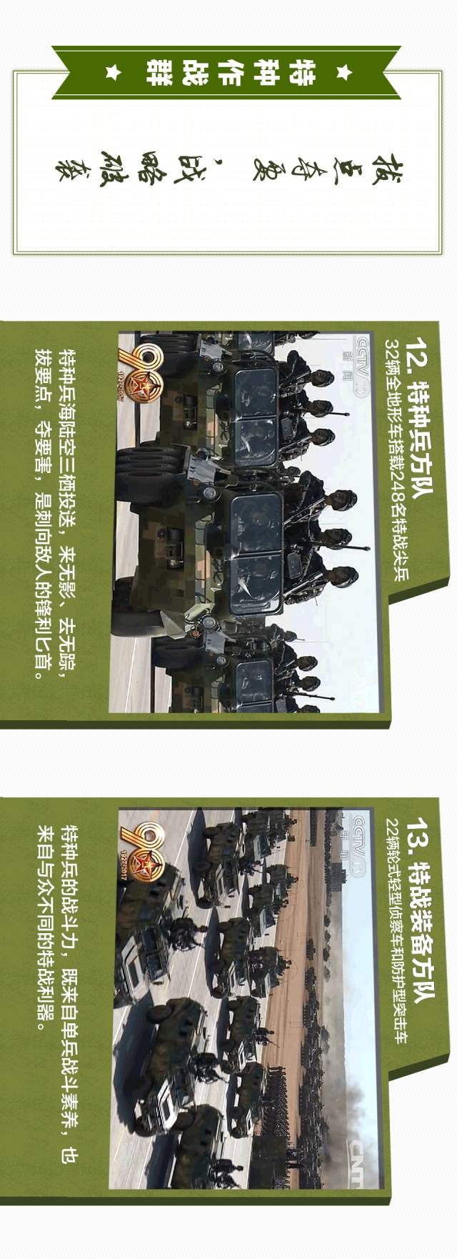 这一环节的展示,不但体现了我军官兵训练有素,更体现出此次阅兵按照作战群举行分列式的用心,反映我军在发展过程中机动作战、立体攻防的战略要求。
