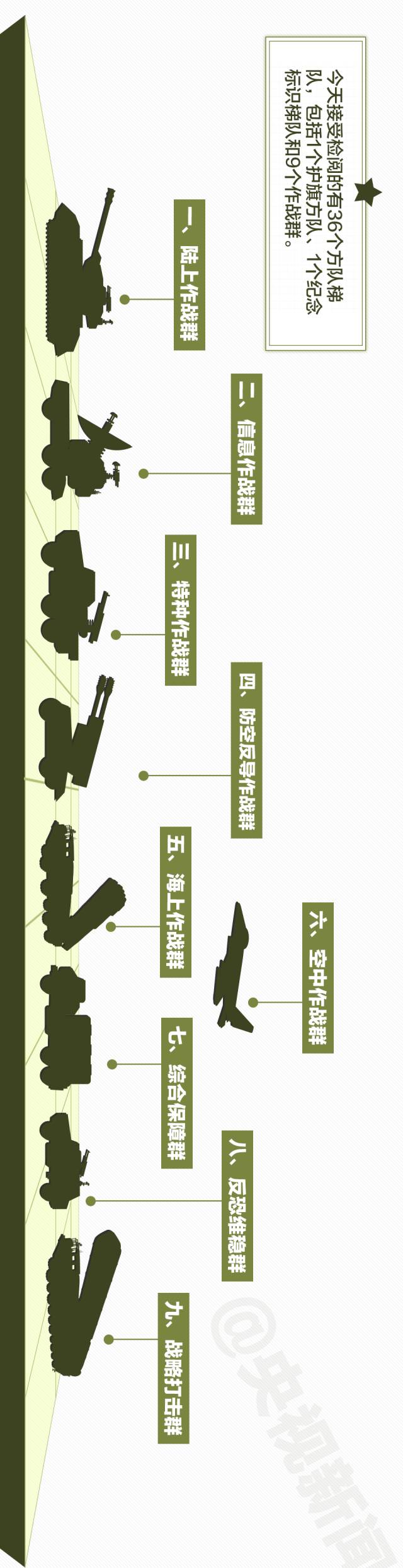 梳理了今天接受检阅的36个方队、梯队。通过一张图,请您再来一次沙场点兵。