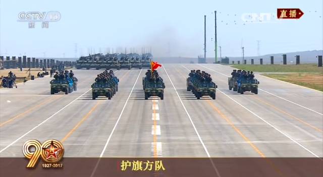 护旗方队肃立在检阅部队最前端,第一个接受习主席检阅。